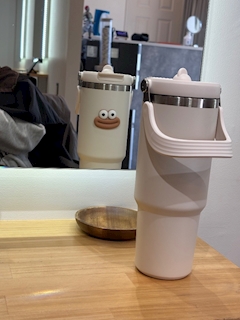 やほ! まいです😌😌 こないだ美容院行ってきたんだけど なんかすごい目が合った👀 私のお気に入りタンブラー🥛🩷 最近出かける時絶対持っていくの! でもこんな感じでよく目線を感じる👀笑 可愛いような可愛くないような このブサカワ感がなんかいい🎶 保冷もめっちゃ長くて1日経っても全然氷なくなってない! ストロー洗うのが少しめんどくさいけどまあ我慢^^笑 じゃ! またね!