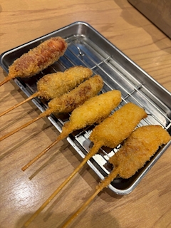 やほ! まいです😌😌 大阪の夜ご飯で二軒目に行った串カツ屋さん! 串カツだるまに行ってきた!! もうこの写真見て何頼んだか覚えていません🤗 ササミと豚と何頼んだんだろう、、 この写真じゃないけど玉ねぎとかナスとかの 野菜たくさん頼んだ!!🧅🍆 やっぱ野菜の串カツめっちゃ好きなの🥹🩷 お肉は少しでいい👍🏻笑 やっぱ本場の串カツは美味しいですなあ じゃ! またね!