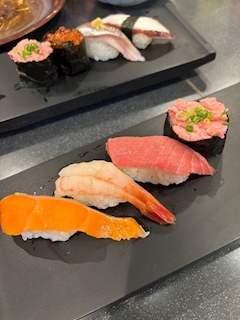やほ! まいです😌😌 こないだ珍しく出勤前にすしざんまい行った! いつもすしざんまい行くとしたら営業終わりとか夜中なんだけど 営業前いったのは初めて😂 今回頼んだお寿司はこれ!⬇️ 左から サーモン、甘エビ、中トロ、ネギトロ 大好きなネタばっかり🫶🏻🩷 すしざんまいのお寿司本当に美味しいし 久しぶりに食べれて良かったー! じゃ! またね!