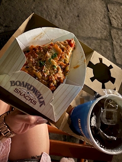 やほ! まいです😌😌 ユニバで食べたpizza🍕 これめっちゃ美味しかったー!! お昼ご飯のハンバーガーがまあまあ早い時間に食べちゃってて お腹減ってピザ見つけて食べちゃった!🤤💭 照り焼きチキンピザ🐔🍕🩷 初めてユニバでピザ食べたけど 生地もちもちだしドリンク元々もセットだし🥤 ベンチで食べるのも気持ちいいね🍃 沢山食べた1日だったなぁ! じゃ! またね!