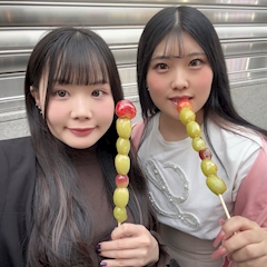 ひまりです❕ 大阪でもぶどう飴を 食べた〜🍇 めちゃくちゃ長くない!? 1番上には いちごも乗ってる🍓✨️ これで200円だったの😳 安すぎてびっくり笑笑 パリパリでめちゃ 美味しかったー🫶🏻 大阪ご飯美味しくて いいなー🥺