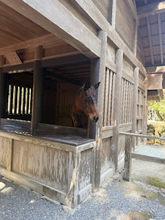 やっほー! まりです🌟 日曜日に伊勢神宮に行った時にお馬さんをパシャリ📸💕 毎年行ってて前に見れたのがだいぶ前だったから見れてテンション上がった🎶 前に見たのが白いお馬さんだったから茶色のお馬さんは初めてだったの!! 目がきゅるきゅるしてて神社のお馬さんの神聖な感じがすっごく伝わってきた🥺 沢山の人が見て写真撮ってたよー! 来年以降も見れるといいなー💭 ではまた! まり🎀