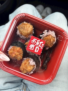 やほ! まいです😌😌 こないだ大阪向かってる時の朝ごはん! 久しぶりに天むす食べたよ〜🍤🩷 サービスエリアで見つけて久しぶりに食べたくて買っちゃった! 量もちょうど良くて美味しかったー! 中に漬物が入ってたんだけど 口の中リセットされるし美味しいし大優勝🥇 朝ごはん兼お昼ご飯で食べたんだけど やっぱサービスエリアのご飯だーいすき! とっても大満足なご飯でした!🥰 じゃ! またね!
