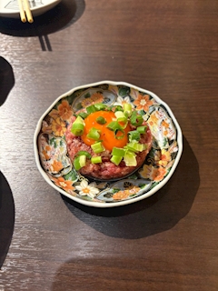 やほ! まいです😌😌 ユッケ〜!!🥩🩷 こないだ焼肉行った時のユッケなんだけど やっぱ焼肉でユッケは必須だよね🥰🩷 ここの焼肉屋さんのユッケめっちゃ美味しくて 1人で1個ペロリ🤤 ねぎが横に盛ってあるのもポイント激高👆🏻 いつも思うんだけど...このたんぽぽみたいなやつって食べれるの??🌼 食用花なのかよく分からずいつも食べないんだけど 飾りだよね、、?食べなくていいよね?😂 じゃ! またね!