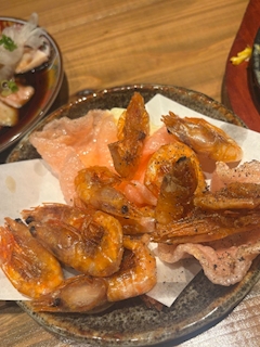 やっほー! はなです🌼 1個前のブログで載せたお刺身と同じお店で 唐揚げも食べました❤️❤️ 普通のやつもだけと甘海老の唐揚げも🦐 まいご主の知り合いの方のお店らしくて もともとは唐揚げ裏メニューだったらしい🫢💗 1個がおっきくて 肉汁たっぷりジューシー唐揚げでした🤤 甘海老の唐揚げもおいしすぎて はながほぼ1人でぱくぱく食べちゃいました😅 何でも唐揚げにするとおいしいよねー🥰 はな🌼