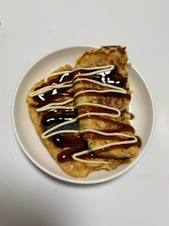 じゅりだよー♩ タコパで余った材料でお好み焼きつくった!🎶 キャベツも紅しょうがも結構余ってた🥬 タコパだけど粉をお好み焼き粉でやったからお好み焼きのがなんなら美味しかった🐙 さくらと半分こした! さくらがお腹すいてないって言ってたから半分こにしてみたんだけど 食べてみたらお互い1枚ずついけたわ笑笑 まだ材料余ってるからまだ作れる!🥹 誰か食べる人ー!笑