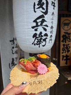 やほ! まいです😌😌 こないだ犬山城下町行ってきたんだけど そこで食べた肉寿司〜!🥩 犬山来るといつもここの肉寿司食べる! ここの肉寿司はほんとに美味しくて 見た目も可愛い!! かまぼこがハート柄なのがポイント🩷笑 色んなところに肉寿司売ってるけど まいはここが1番好きだし 1番人気なんじゃないかな?って思う! 平日だったから人もそんなに多くなかったし とっても楽しかったです🫶🏻 じゃ! またね!