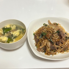 ひまりです❕ 自炊日記👨🍳 この前急に 韓国料理が食べたくなって、 チャプチェとわかめ卵スープ を作りました🇰🇷 パッと見は焼きそばに しか見えない😂 一時期韓国料理に どハマりしてた時に 狂ったようにチャプチェは 作ってたので、 得意料理だし自画自賛 するくらい自分では美味しい笑 また韓国旅行に行って 本場のが食べたい🥺