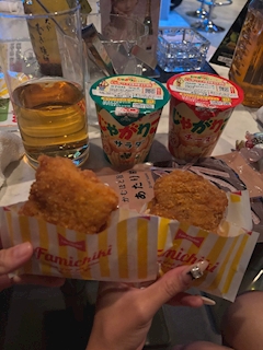 やほ! まいです😌😌 こないだはなとダブル指名してくれたごしゅ! お腹減ったーってはなと2人で言ってたら なんとこんなに沢山買ってくれた!!😂 この時間のファミチキ、、、 デブすぎるやろ🐷笑 でも飲んでる時のファミチキ最高に美味しかった🤩🩷 そしてうちらの大好きなイカ〜🦑 本当かイカそうめんが良かったけど 売り切れだったらしく、、、 あたりめ むしゃむしゃ食べたよ🧏🏻♀️💭 おつまみたーーくさんありがとう🙂↕️🌟 じゃ! またね!