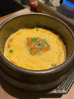 やっほー! はなです🌼 韓国料理たくさん出ます! こちらはケランチム💛 韓国の卵焼き🥚 熱々ふわふわでめちゃくちゃおいしかった🤤 こっちはチュモッパ〜〜🍙 手袋つけてまぜまぜするのが楽しかった👍🏻 お米大好物だからこれだけで満足☺️ とびこ入ってて食感ぷちぷちで最高でした🫶🏻 韓国のりが入ってたら大体優勝だよね🙂↕️ はな🌼