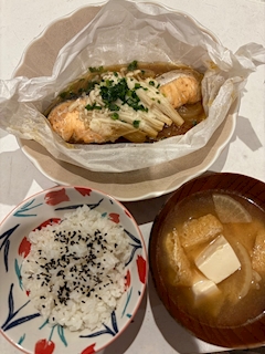 やほ! まいです😌😌 自炊日記👩🏻🍳🩷 最近ハマってる鮭のホイル焼き🐟 安定の美味しさ(*´༥`*)♡ 包んで水入れたフライパンに放置でいいから 時間ない日でもすぐ作れる👩🏻🍳💭 今回は具材買うの忘れてしまって 炊き込みご飯は作れず、、、🫠笑 なんでメモ持って買い物行くのに買うの忘れてしまうのか...... 鮭のホイル焼きには炊き込みご飯必須なのにー! ごましおで我慢の少し悔しい晩御飯でした😂 じゃ! またね!