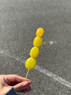 やほ! まいです😌😌 大好きなマスカット飴〜!🍇💚 いつもいちご飴かマスカット飴か迷うんだけど この日の気分はマスカットでした🎶 めっちゃフルーツ飴好きで 屋台とかで見つけると絶対買っちゃうの💭 お腹いっぱいでも絶対買ってまう、、、 やっぱ甘いものって正義だよね〜 お腹いっぱいでも無限に食べれちゃうし 甘党にはデザート欠かせない🫶🏻 今年も色んな祭りで沢山フルーツ飴食べよっと! じゃ! またね!