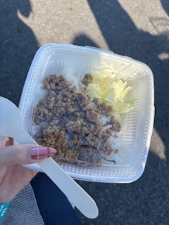 やほ! まいです😌😌 さっき載せたブログの続き!⬇️ 別のキッチンカーでガパオライス頼んだよ🚚 元々ガパオライスだいすきで この日もルンルンで頼んだんだけど....... なんと目玉焼きトッピングが売り切れ🥲 ガパオライスに目玉焼きないことある?!🍳 まあまあ...我慢してひと口食べたんですが 辛すぎてびっくり^^; 唐辛子の辛さってより山椒とかの痺れる系で 辛すぎて食べれず妹にパス🎶笑 妹は美味しい美味しい食べてたのでまあウィンウィンかな^^ 次は当たりなガパオライス食べたい🥹笑 じゃ! またね!