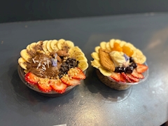じゅりだよー♩ 今日はたくさん飲んだ!ありがとうございました^ᴗ ̫ ᴗ^ ご飯からめーちゃたのしかった!まいちゃんはなちゃんとみらいさんも!💖 直前まで地元に帰ってたのですが!! みてー( ᵔ⤚ᵔ )あさいーたべた いつもの友達と👱🏻♀️!ちゃんとしたアサイー久しぶりにたべた!おいしかった! 地元では流行ってるたぶん! 明日もよろしくお願いします😻