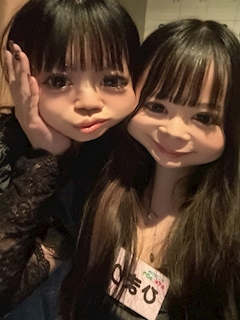 ひまりです❕ 今日初めて ななちゃんと写真撮ったー📸 2人とも若干酔ってきて 変な写真😂 かわいくない?😂 赤ちゃんエフェクト らしいけど、 もはや宇宙人にしか 見えない笑 まだまだご帰宅お待ちしてます😂