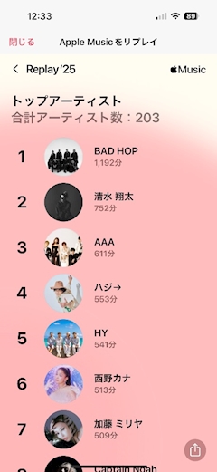 おはよ! ちなつです! 今年もでたね🥹プレイリスト!! BADHOPが1位だったよ笑笑笑笑 そんな聞いてたんだ(_Д_) ライブいきたいなーー!! またね!