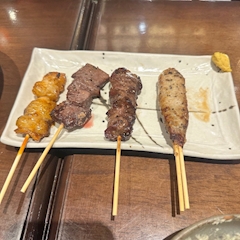 ひまりです❕ だーいすきな焼き串🫶🏻 この右にあるつくね 甘だれで頼んだけど、 色がなかったから 塩になっちゃったのかな?って思ったら ちゃんとたれの味もするし、 今まで食べたつくねの中で 1番ジューシーで びっくりした😳 大黒ハマりそう🎶