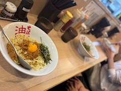 じゅりだよー♩ 油そばってちょうどいい味の濃さでぺろっと食べれるから定期的に食べたくなる🍜♡ 麺ほんとうにだいすきなのでこのまえもまたいつものひとたち(さくらみり) 引き連れて行ったよ^ᴗ ̫ ᴗ^ ここめいどの𝐨𝐟𝐟𝐢𝐜𝐢𝐚𝐥ご飯屋にしてもえんちゃう🐶ってくらい行ってる 今回は台湾まぜそばのほうにした! すみませんがニラネギ抜です